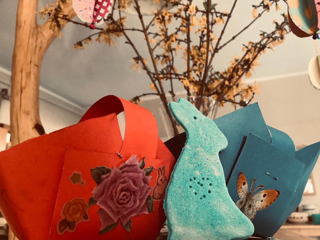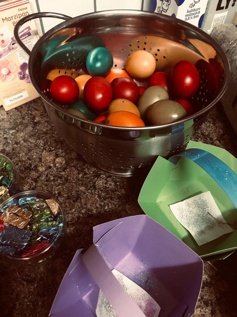 Im Kinder-& Jugendtreff MÜHLE wurde in den Osterferien fleißig gebastelt und gebacken. Am Montag haben wir aus Salzteig hübsche Deko für den Osterstrauß gefertigt und am Dienstag folgten bunte Körbchen, die der Osterhase für die Suche am Donnerstag benötigte. Für die Gaumenfreude wurden zwei leckere Karottenkuchen gebacken sowie die Eier bunt gefärbt. Gemeinsam konnten dann am Gründonnerstag die Besucher*innen ihre gefüllten Körbchen suchen und sich beim Picknick den Kuchen schmecken lassen. Wir wünschen allen eine schöne Osterzeit und freuen uns auf ein gesundes Wiedersehen.