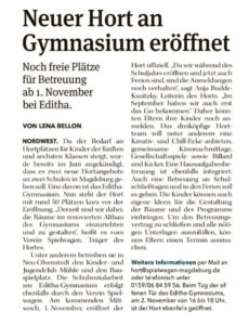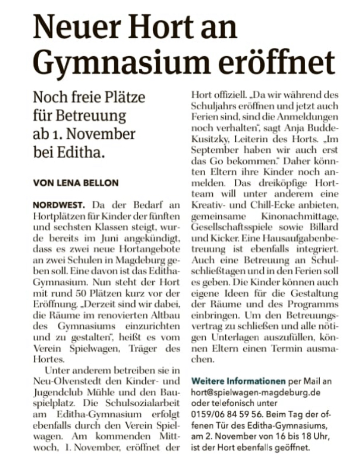 Unser Hort am Editha-Gymnasium hat am gestrigen 01.11.2023 erfolgreich eröffnet.