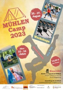Vom 25.08. – 27.08. veranstaltet der Kinder- & Jugendtreff MÜHLE, mit freundlicher Unterstützung des Bundesprogramms „Demokratie leben!“, ein Wochenendcamp mit unterschiedlichen Workshopangeboten.