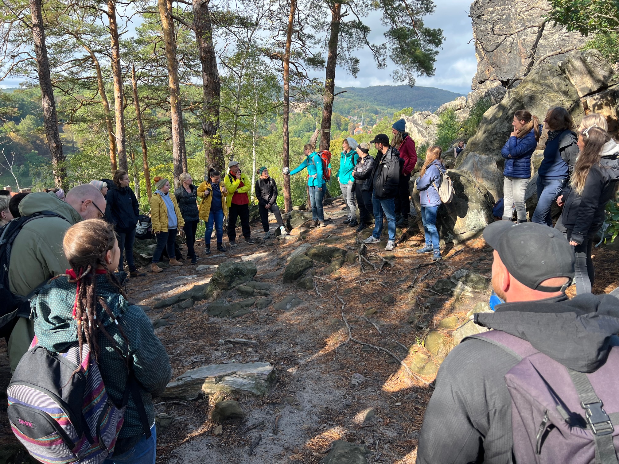 Am zweiten Tag stand Wandern auf dem Programm. Bei herrlichstem Herbstwetter trafen wir uns im Harz und wanderten die Teufelsmauer entlang. Dabei konnten wir uns als Team besser kennenlernen, neue Kolleg*innen willkommen heißen und gemeinsame Zeit in der Natur genießen. Bei einem sonnigen Picknick am Hamburger Wappen ließen wir die Teamtage entspannt ausklingen, bevor wir uns wieder auf den Rückweg machten.