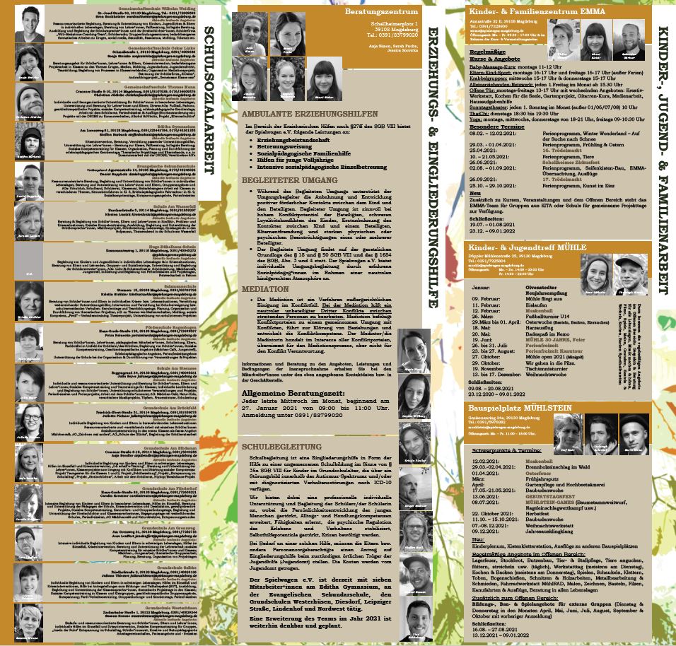 Alle wichtigen Informationen zum Spielwagen e.V. in gebündelter Form und als Ausblick auf das Jahr 2021 sind nun im Jahresplanungsflyer >>> (pdf) ersichtlich, der ab Januar bei allen Einrichtungen und Diensten des Trägers erhältlich ist.