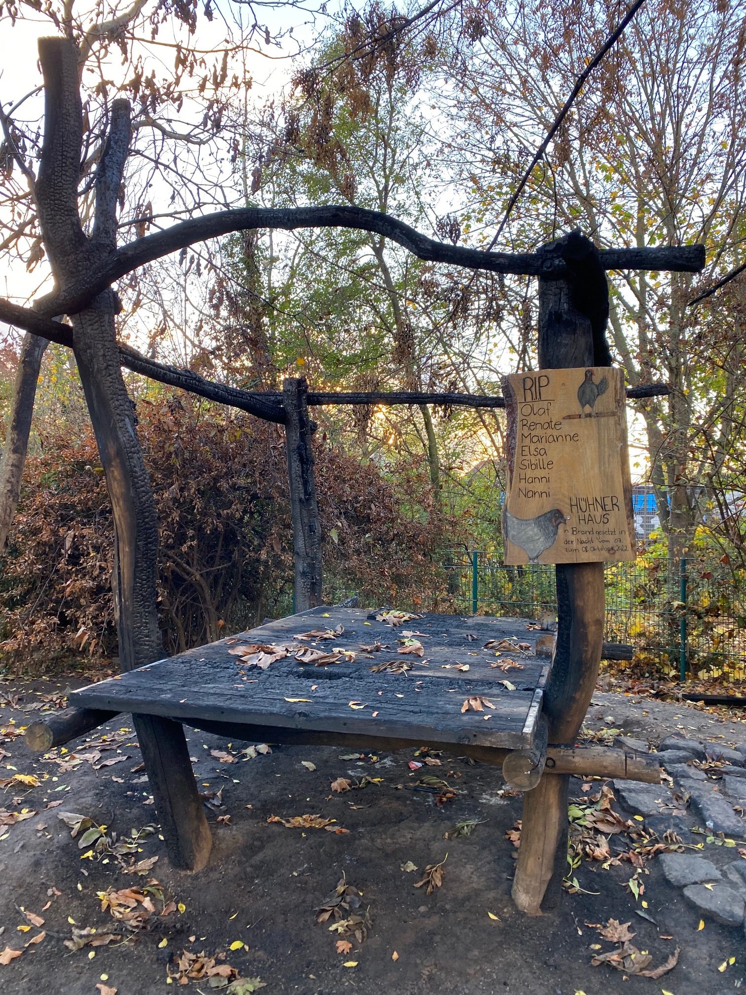 Für den Moment sollen die Überreste jedoch als Mahnmal erhalten bleiben, bis finanzielle und v.a. personelle Ressourcen einen Wiederaufbau ermöglichen. In naher Zukunft ist zunächst die Erneuerung des, ebenfalls durch den Brand in Mitleidenschaft gezogenen, Badeteichs für unsere Gänse geplant.