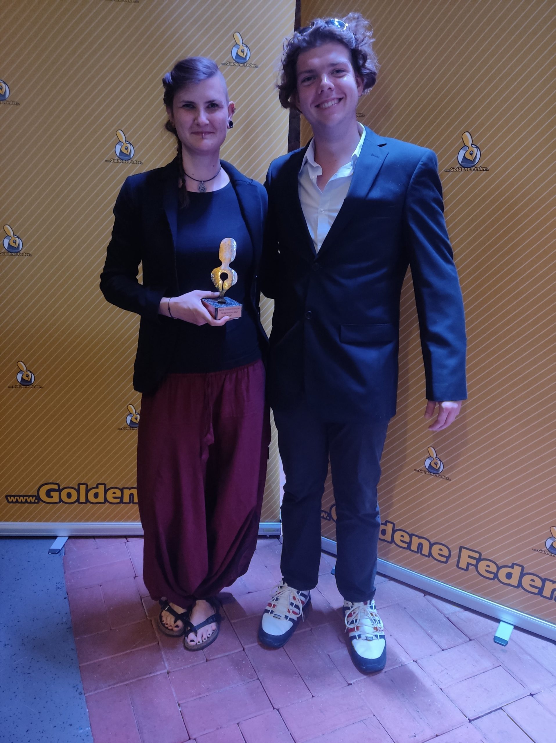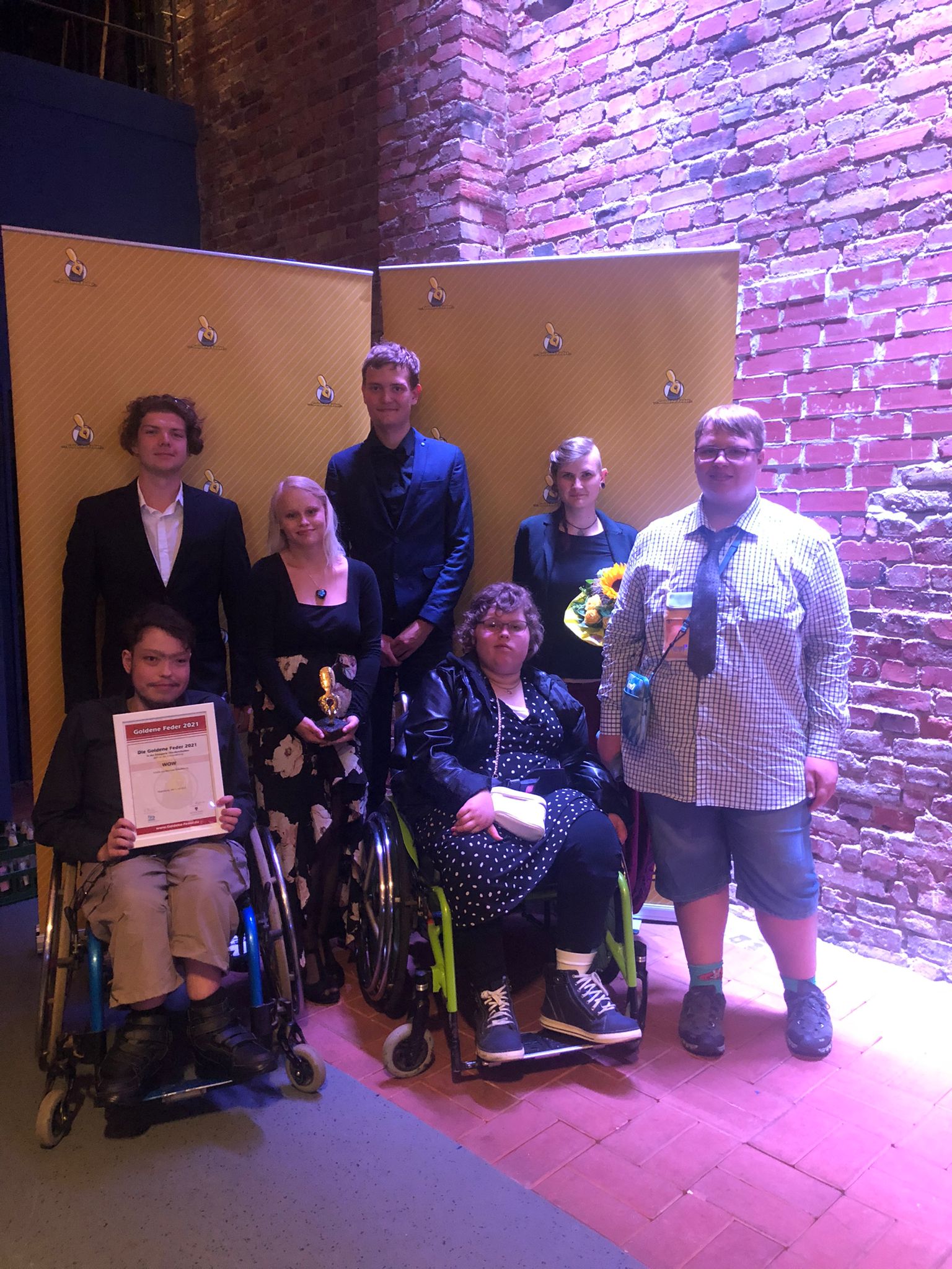 Am 01.07.2022 fand im Moritzhof der Jugendpresseball statt, auf dem die „Goldene Feder 2021“ verliehen wurde – die Auszeichnung für die besten Schülerzeitungen des Landes Sachsen-Anhalt. Die Schulzeitung der Schule Am Sternsee, die „WOW“, hatte sich zum ersten Mal beworben und ihre Sommerausgabe 2021 eingereicht. Zusammen mit ihrer Schulsozialarbeiterin Jule und ihrem Praktikanten Dustin reiste die gesamte Redaktion an, um an der tollen Veranstaltung teilzunehmen. Es gab ein leckeres Buffet und viele verschiedene Laudator*innen verliehen die Preise für die besten Schülerzeitungen in den Kategorien Grundschule, Sekundarschule, Gymnasium, Förderschule und beste/r Nachwuchs-Journalist*in. In der Kategorie „Förderschule“ gewann tatsächlich die „WOW“ und die Schüler*innen nahmen stolz einen schicken Pokal, eine Urkunde, einen wunderschönen Blumenstrauß und 250€ Preisgeld entgegen. Eine tolle Belohnung für die fleißige Arbeit der Redakteur*innen.